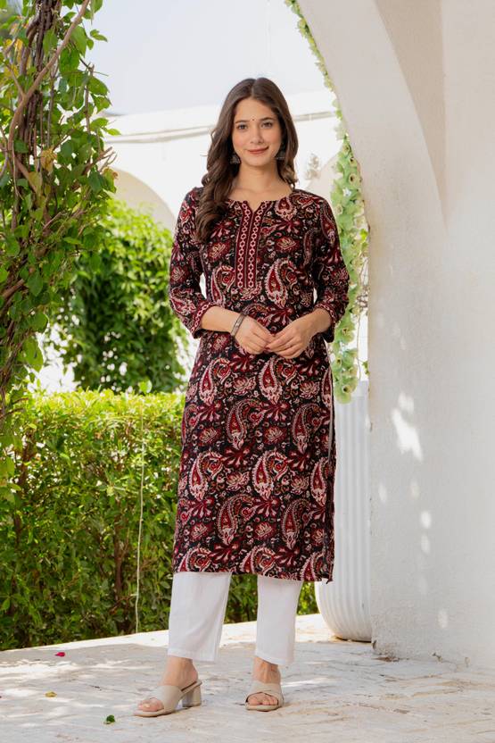 Women Printed Viscose Rayon Straight Ladies Kurti